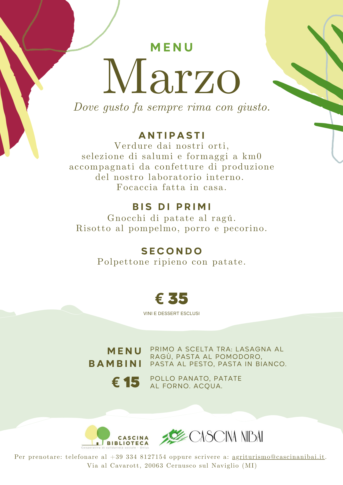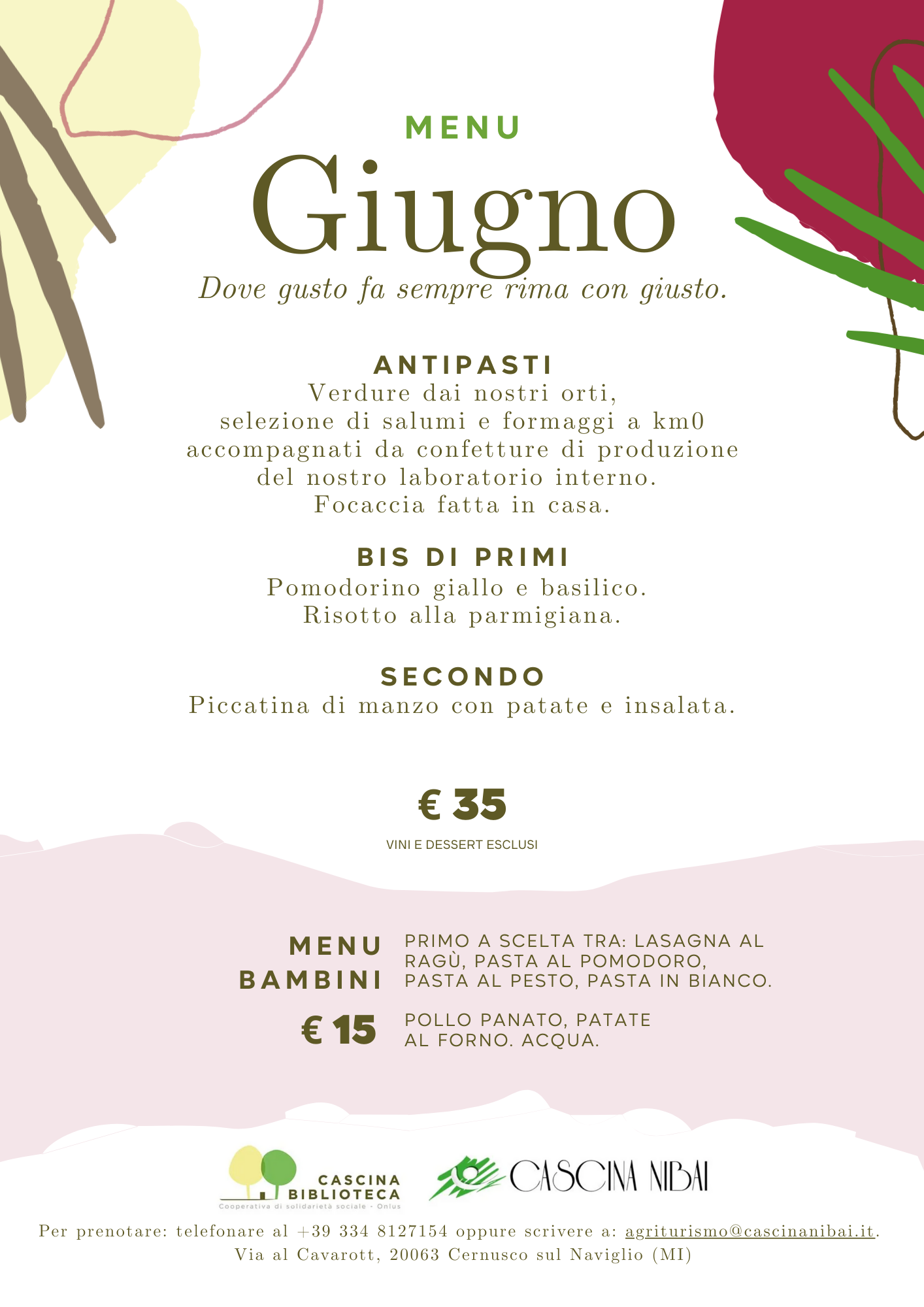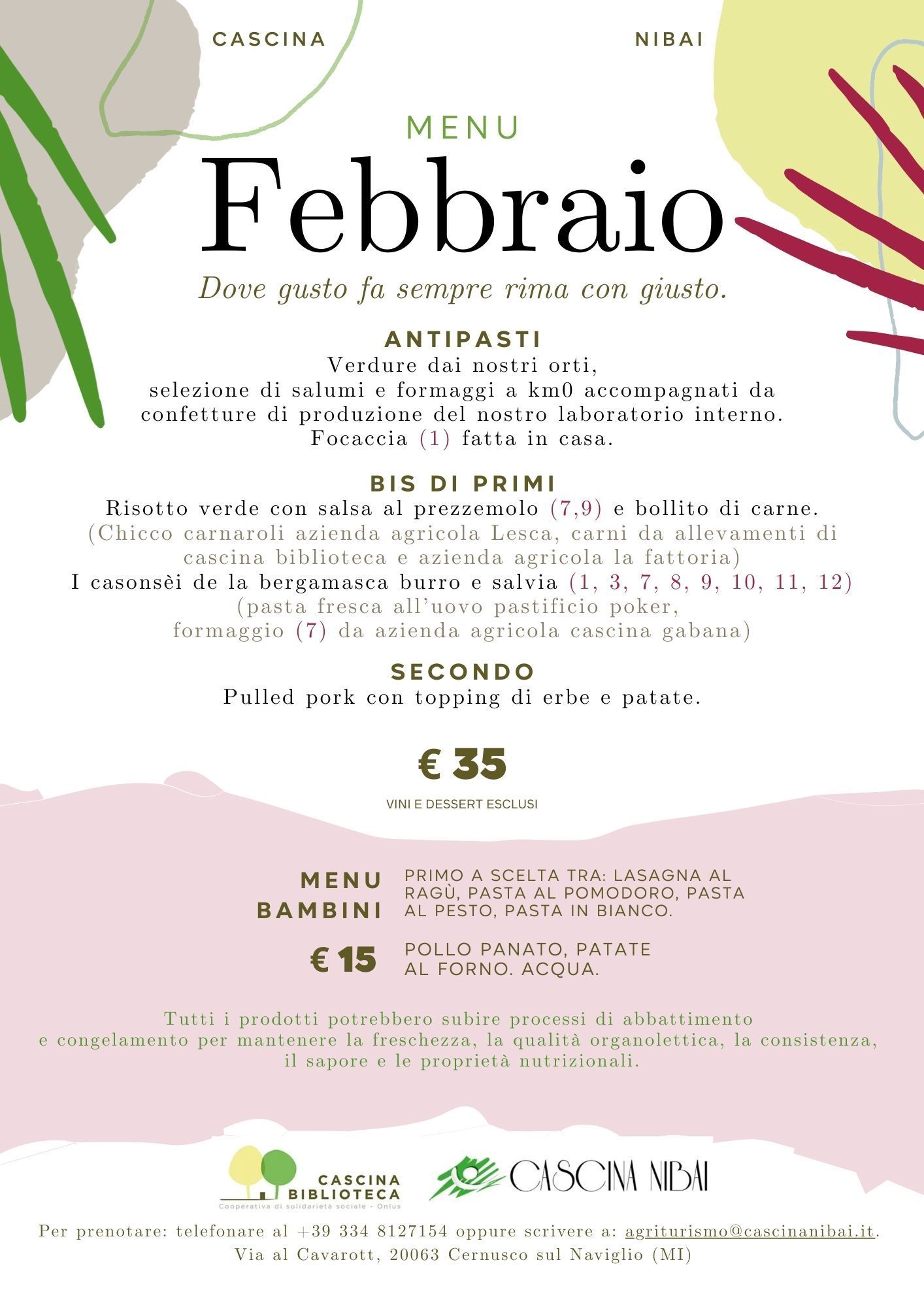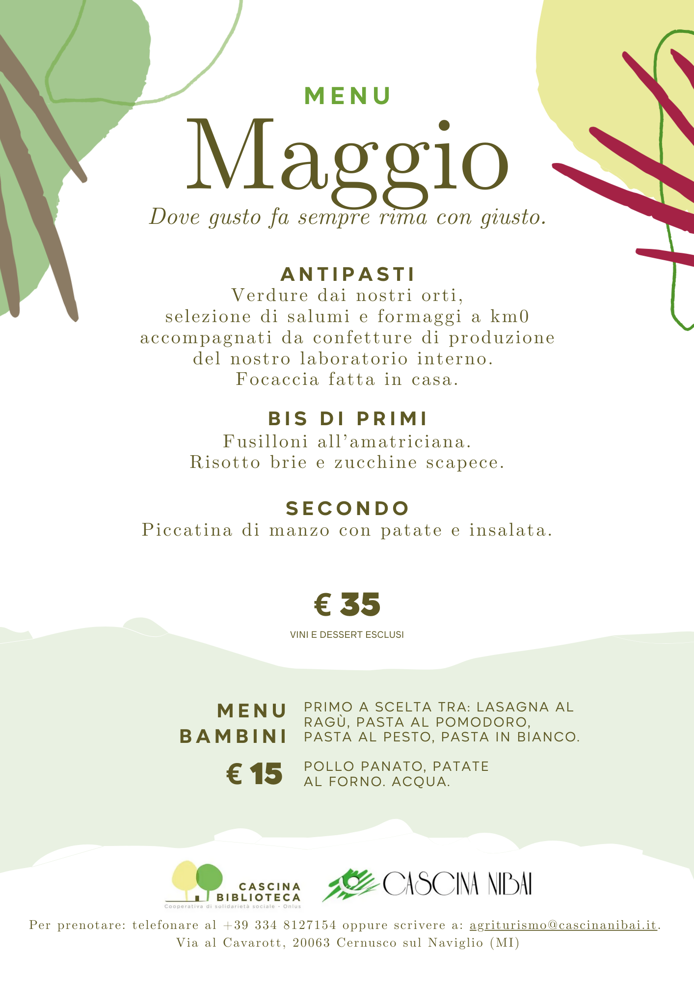 agriturismo@cascinanibai.it oppure telefonare al